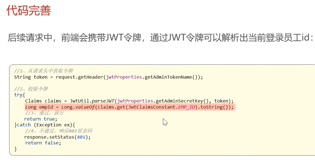 claims对象里放了一个emplyee.getId(),放了一个用户id,在登录成功后其实已经把id放到token里了。
