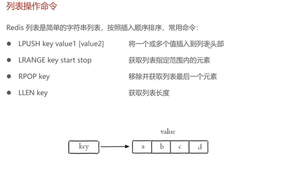 RPOP KEY 的话呢,其实就是把列表最后一个元素删了,并返回提示 删除的值 例如 上图表中的 元素 d
