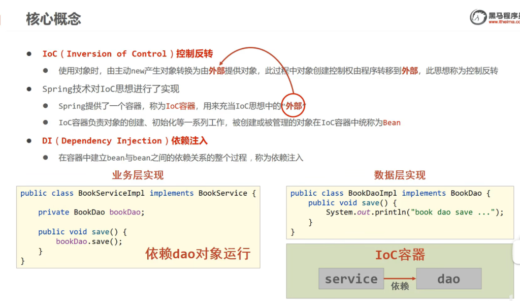 一个是不用new对象了,然后就是直接通过IOC容器存放管理对象,第二个就是在Ioc容器如果有依赖关系的bean会进行依赖注入,直接绑定他们的依赖关系