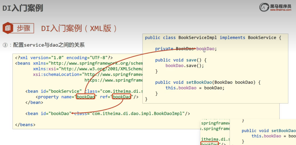 要想Service的bean和dao的bean的关系互联,需要依赖注入,