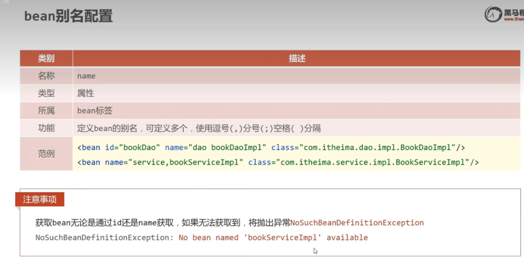在id后,name属性 name=”service service2 bookEbi”这三个都是别名,