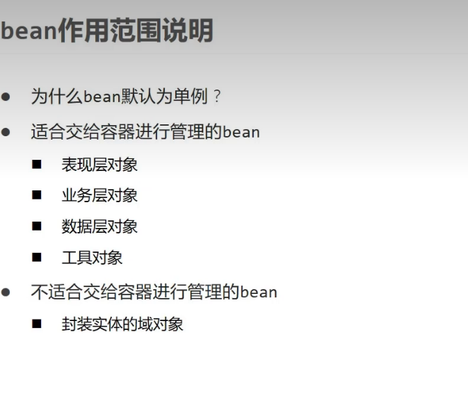 创建出来的bean对象默认是单例的,如果想设置为非单例的,那么需要在工厂Bean中再写一个Boolean方法,如图: