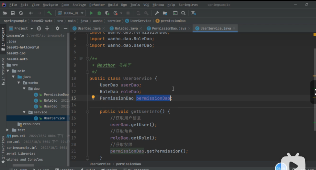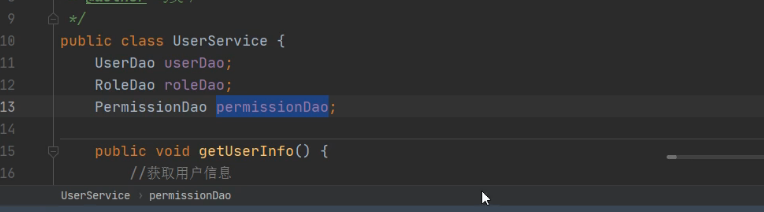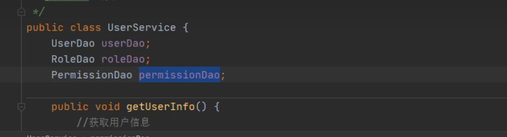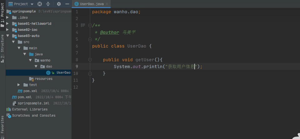 每个Dao里面都有一些方法,用于测试,(输出位get用户信息)