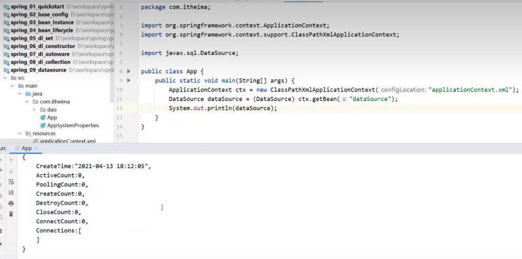 DataSource dataSource =(DataSource) ctx.getbean(“dataSource”);