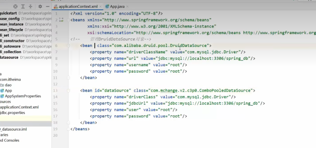 第一个是引入配置bean的文件,是xml文件,ApplicationContext ctx=new ClassPathXmlApplicationcontext(“applicationContext.xml”);