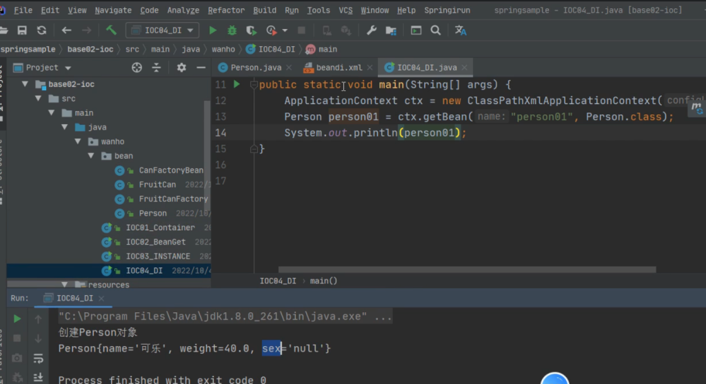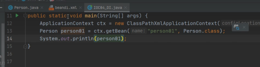 ApplicationContext是创建了一个容器对象,然后通过ctx.getBean来拿到对象,ctx.getBean(name(bean的ID,person字节码文件));