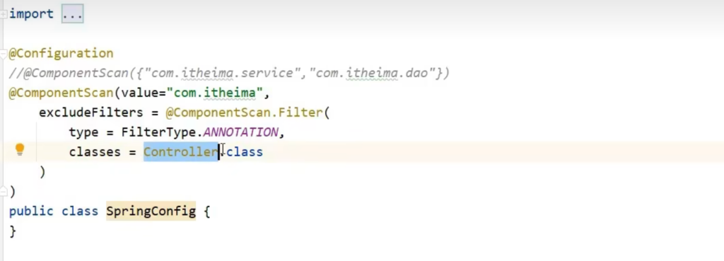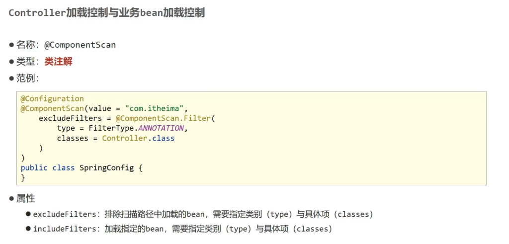 因为Spring都是扫描包 例如 com.itheima 而Springmvc控制的表现层也再这个包的类目下,如何才能避免Spring扫描表现层呢?