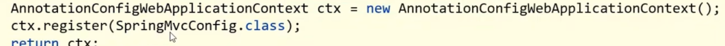 2. 每个上下文实例会注册相应的配置类(SpringMVCConfig.classSpringConfig.class),这些配置类定义了应用中需要的Bean。