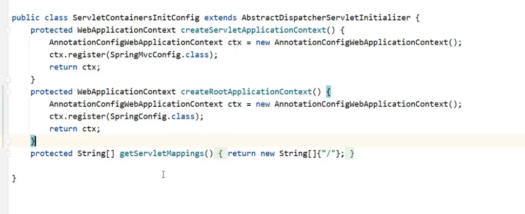 补充:你提供的代码是一个Spring MVC应用的初始化配置类,它继承自AbstractDispatcherServletInitializer。这个类负责创建和配置两个WebApplicationContext实例:一个用于Spring MVC的Servlet(DispatcherServlet)上下文,另一个用于应用的根上下文。这种分离允许你为Web层和非Web层分别配置不同的Bean。