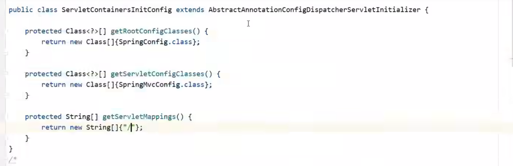 7. 这个方法定义了DispatcherServlet应该处理的请求路径。在这个例子中,"/"表示DispatcherServlet将处理所有进入应用的请求。