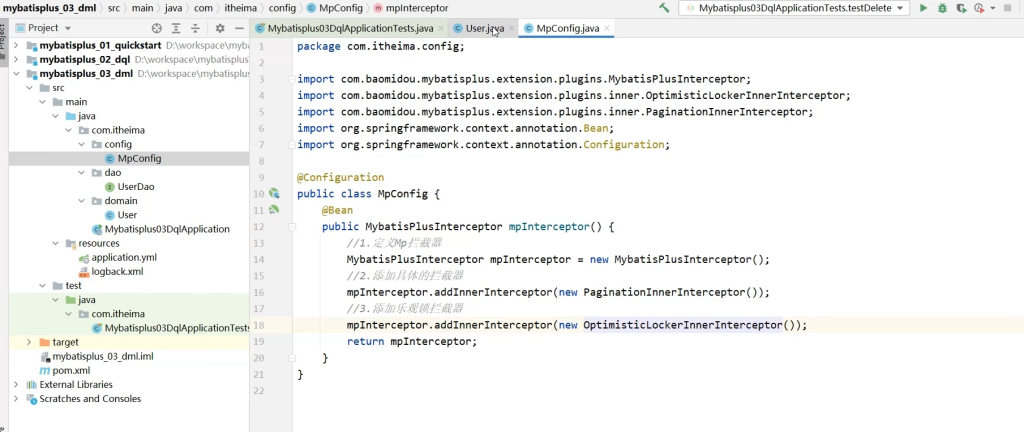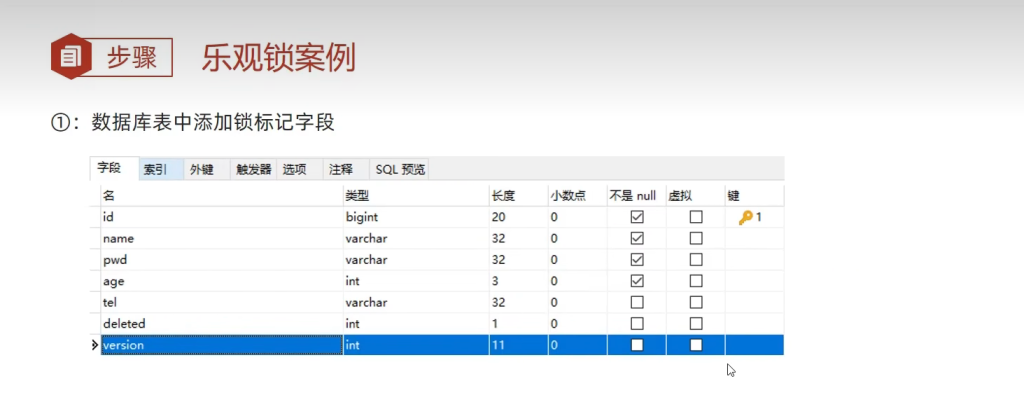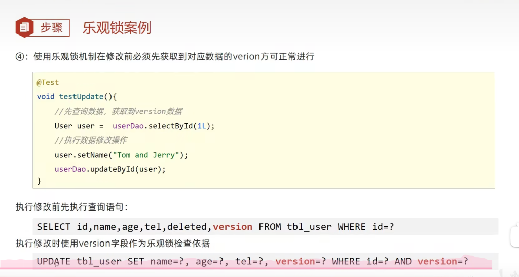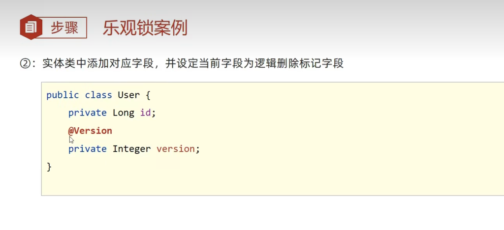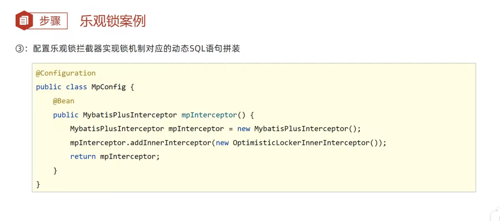 乐观锁 admin | 2024-9-21 21:17 | 238 | Mybatis,MybatisPlus 74 字 | 1 分钟内 第一步:在库里加字段(任意): 去实体属性里加这个字段:加注解@Version 加一个拦截器 名字:OptimisticLockerInnerInterceptor: 小结: 一:加字段 二:配字段 三:使用拦截器动态增加sql语句: 4: 博客内容均系原创,未经允许严禁转载! 豆 暂无评论 发送评论 编辑评论 正在回复 的评论 : 取消回复 Markdown 邮件提醒 发送 编辑 取消 |´・ω・)ノヾ(≧∇≦*)ゝ(☆ω☆)(╯‵□′)╯︵┴─┴ ̄﹃ ̄(/ω\)∠( ᐛ 」∠)_(๑•̀ㅁ•́ฅ)→_→୧(๑•̀⌄•́๑)૭٩(ˊᗜˋ*)و(ノ°ο°)ノ(´இ皿இ`)⌇●﹏●⌇(ฅ´ω`ฅ)(╯°A°)╯︵○○○φ( ̄∇ ̄o)ヾ(´・ ・`。)ノ"( ง ᵒ̌皿ᵒ̌)ง⁼³₌₃(ó﹏ò。)Σ(っ °Д °;)っ( ,,´・ω・)ノ"(´っω・`。)╮(╯▽╰)╭o(*////▽////*)q>﹏<( ๑´•ω•) "(ㆆᴗㆆ)😂😀😅😊🙂🙃😌😍😘😜😝😏😒🙄😳😡😔😫😱😭💩👻🙌🖕👍👫👬👭🌚🌝🙈💊😶🙏🍦🍉😣Source: github.com/k4yt3x/flowerhd 颜文字Emoji小恐龙花! × × 上一篇ID生产策略,多记录操作,逻辑删除下一篇 代码生成器