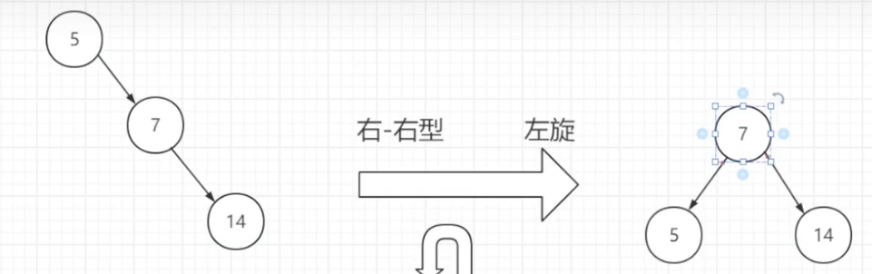 一旦发现右有型的数据结构就会左旋
