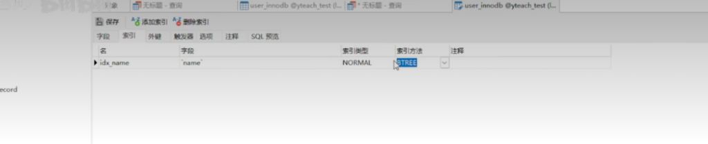 ALTER TABLE user_innodb ADD INDEX in_name(name)