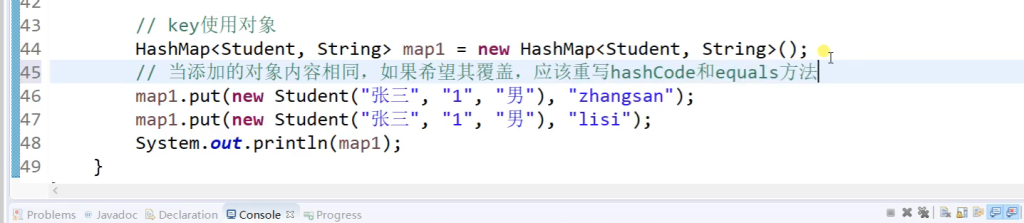 当key使用的是对象时,如果想让其覆盖,要重写hashcode和equals方法
