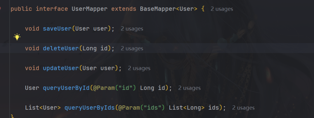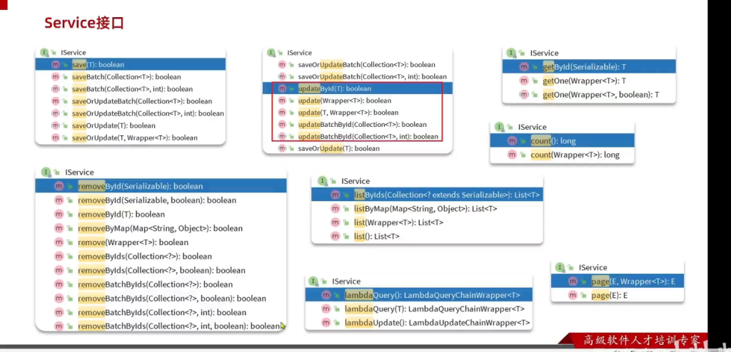 在Controller层调用Service层的接口,在Service的实现类中调用Mapper层的方法,使用mp需要在Controller就调用wrapper来代替xml中的where条件,不过where条件前面的update或者select语句还是要自己写的,mp在遇到复杂的where条件的时候还是要mb和mp结合,省去了where条件,注意 例如上图: