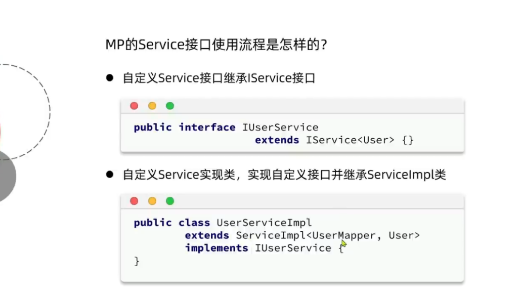 我们的自定义接口继承mp提供的接口。我们的接口实现类去继承mp给的实现类,
