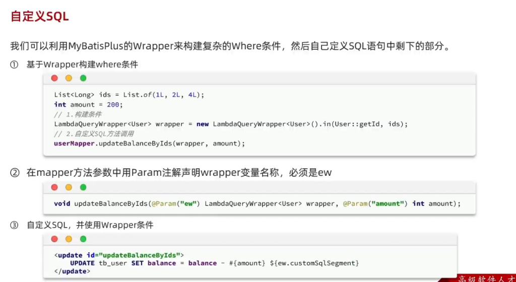 balance-#{balance} ${ew.customSqlSegment} 注意$前面有个空格,不然报错