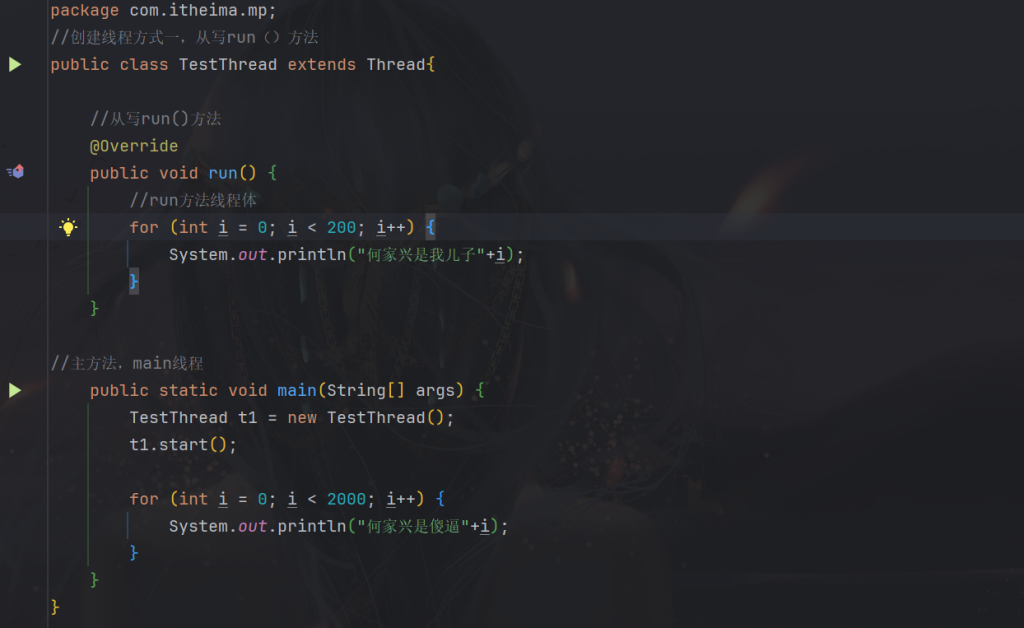 System.out.println("大家好,我是何佳兴,用的是Thread");