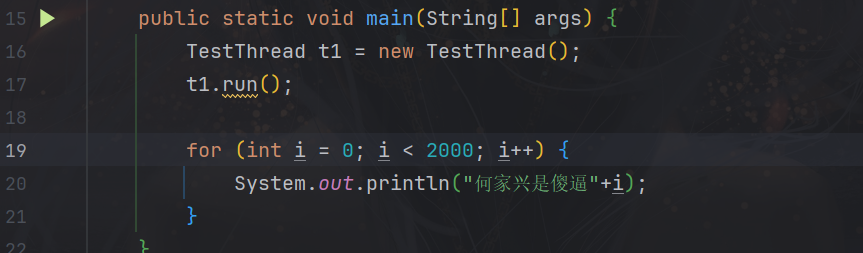 t1.start();//相当于开启了一个线程,执行了run()方法