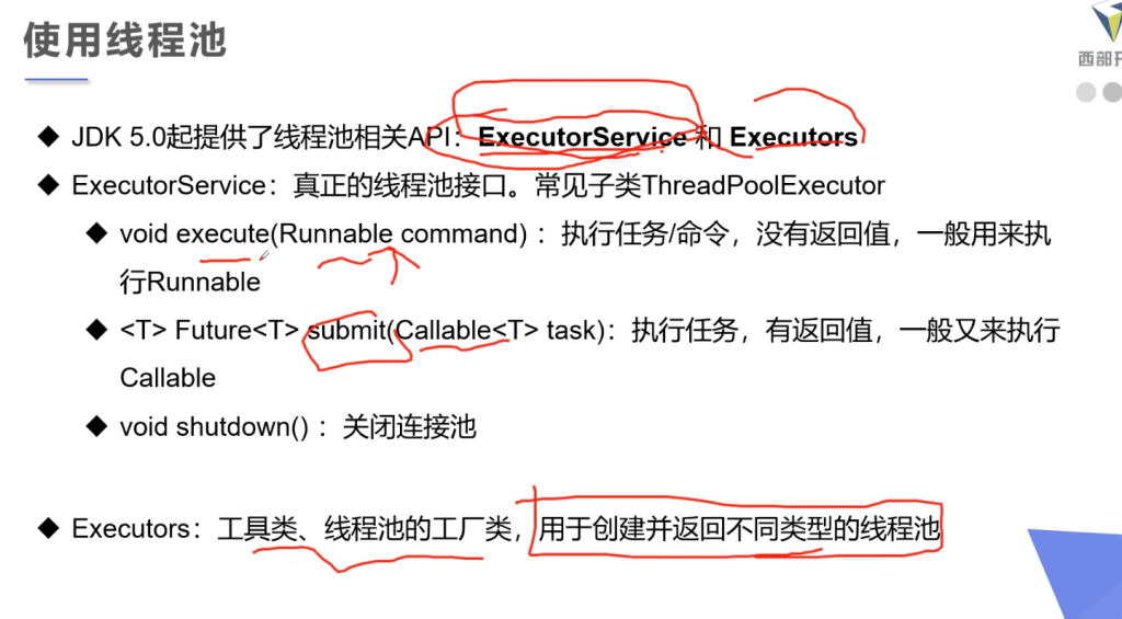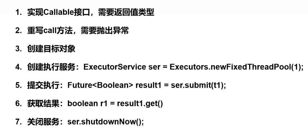 先创建线程,然后就是创建一个线程池,把要创建的线程数目放进去,然后通过返回的ExecutorService 来通过submit来开启线程,获取结果