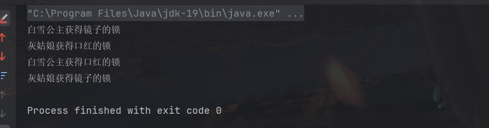把锁拿出来,这就是啥,占据口红想得到镜子,另一个占据镜子想要口红,最后僵持不下,形成死锁,解决办法,锁里面不要套嵌锁