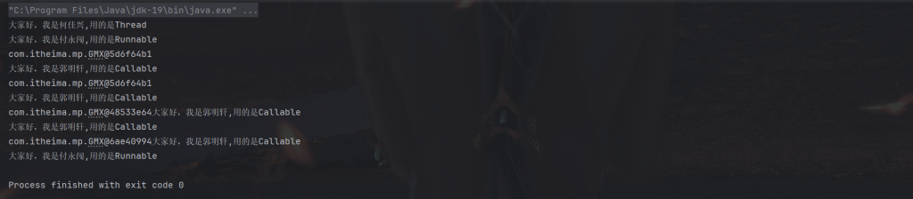 System.out.println("大家好,我是郭明轩,用的是Callable");