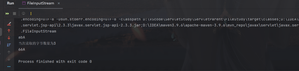 System.out.println(s1);//一共5个字节abA66,第一次读取abA,再次读取的时候会是66A。因为会拿后面两个字节去覆盖前面的,因为没有覆盖A的字节,所以会留在那里