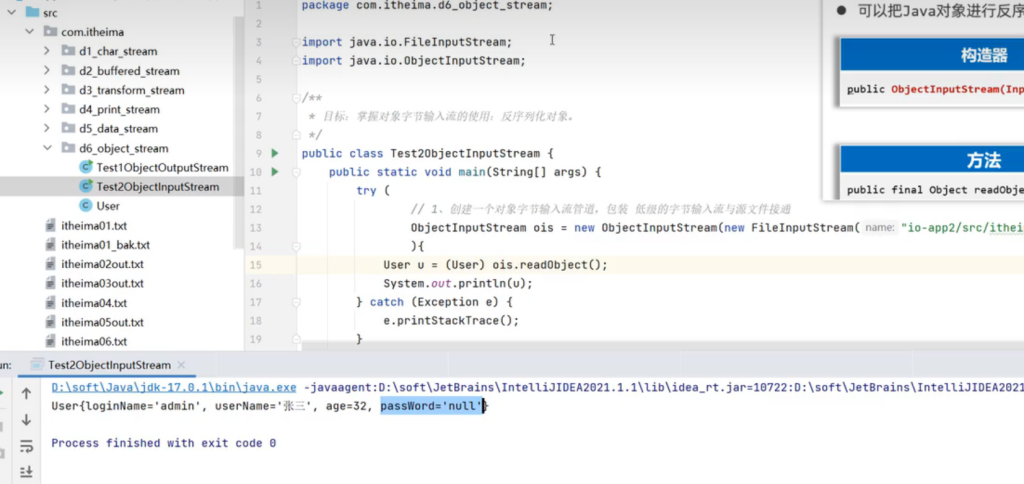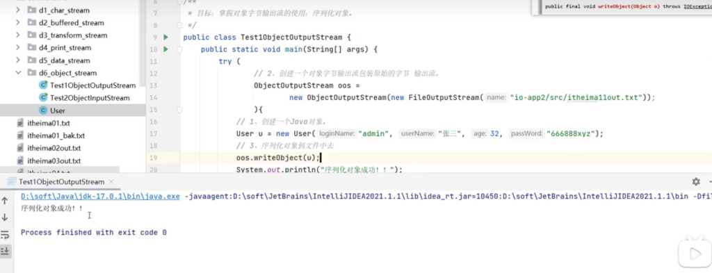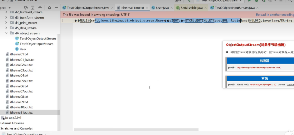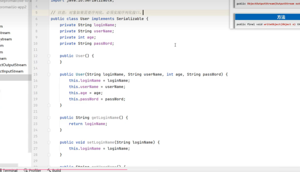 注意:对象如果要实现序列话,对象类必须实现Serializable接口