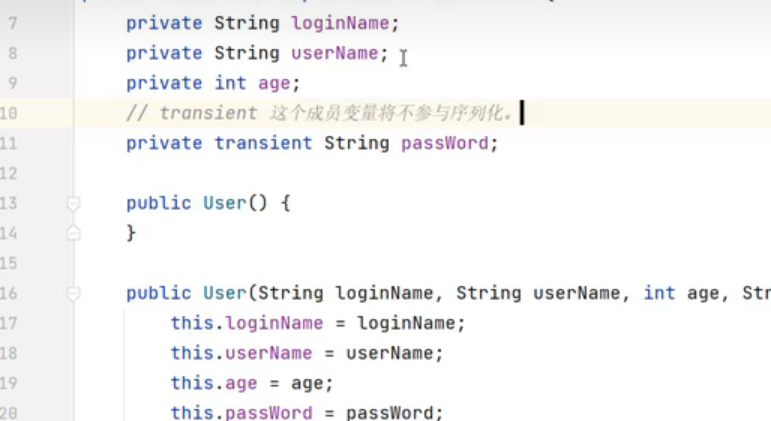 如果不想让密码序列话,在成员变量前面加关键字:transient